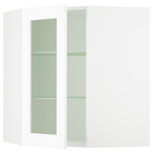 SEKTION Corner wall cab w shelves/glass dr, white Enköping/white wood effect, 26x15x30 "